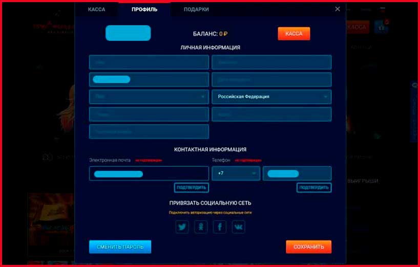 В настройках профиля игрока важно правдиво заполнить все поля, инициалы, место проживания, контактную информацию и другие данные. Они должны пройти через подтверждение. Только после этого пользователь получит свой заслуженный приветственный подарок.